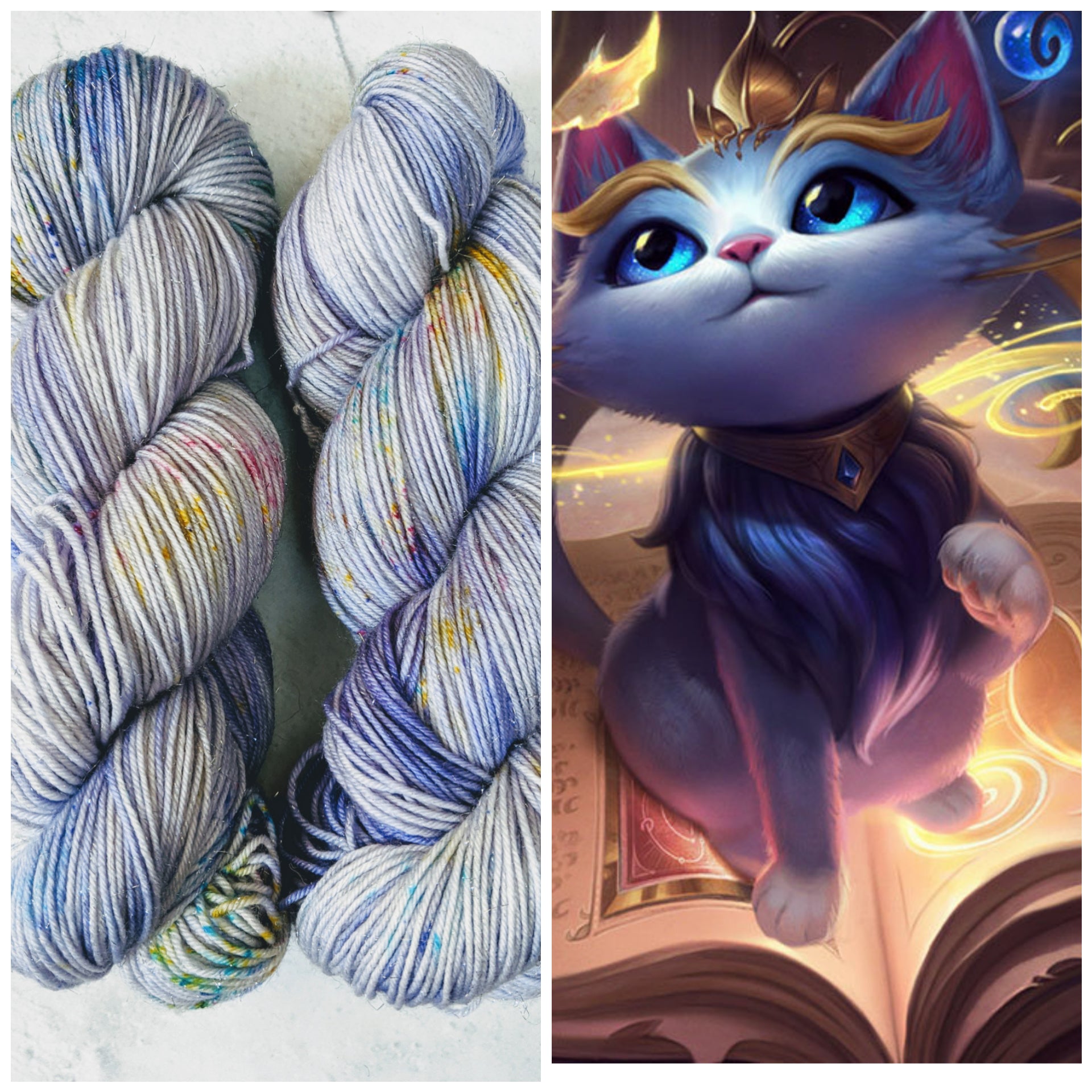 Aegyo DK: 80/10/10 Superwash Merino, Cashmere, Nylon. 246 yards/225 meters.